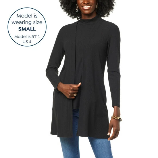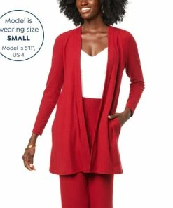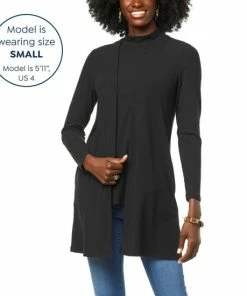 Add a layer ofluxury to your ensemble with this sophisticated, open-front cardigan from Iman.