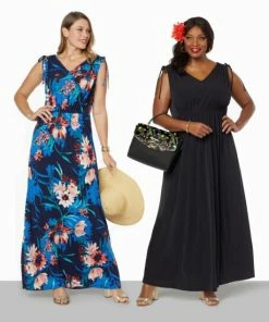 Get a fresh take on Iman’s beloved maxi dress. With its on-trend shoulder cinching and waist-defining detail, this updated version makes a flattering go-to garment for women of all shapes and sizes.