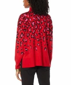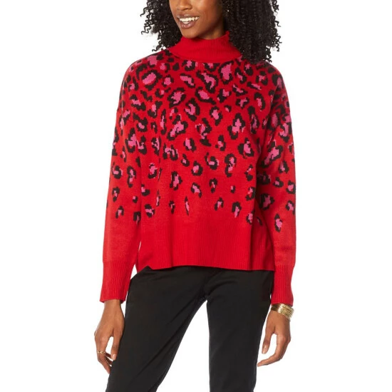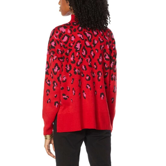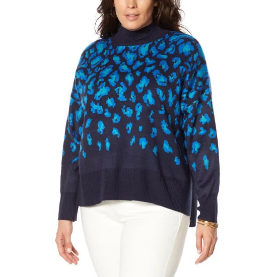IMAN Global Chic Mock Neck Leopard Print Pullover Sweater