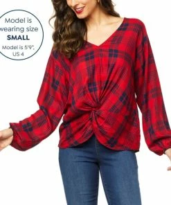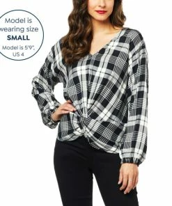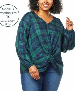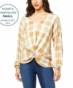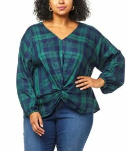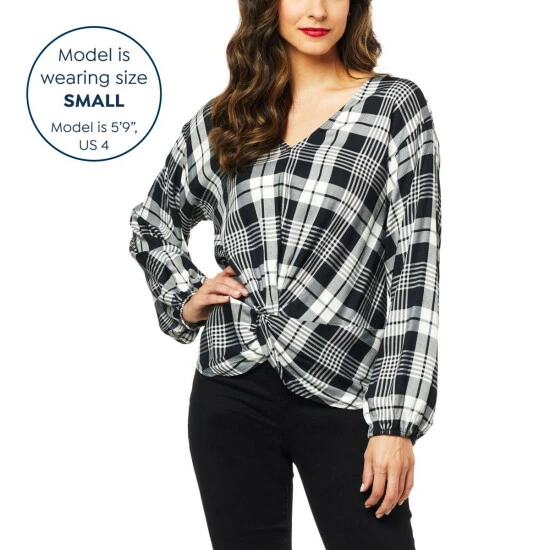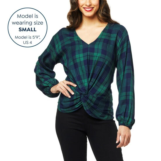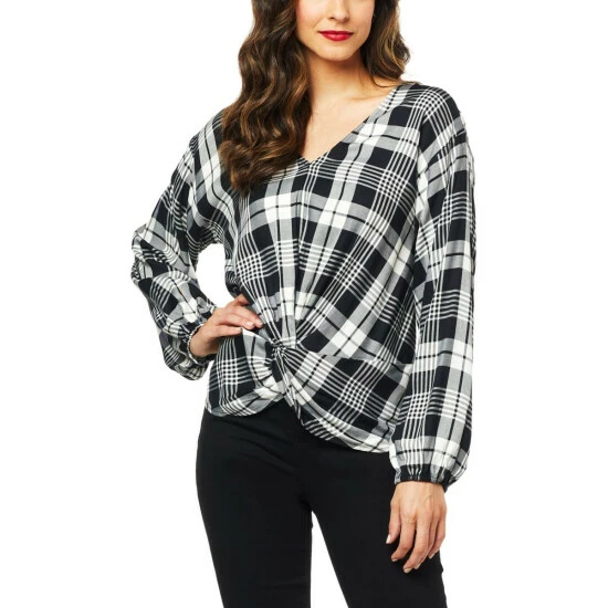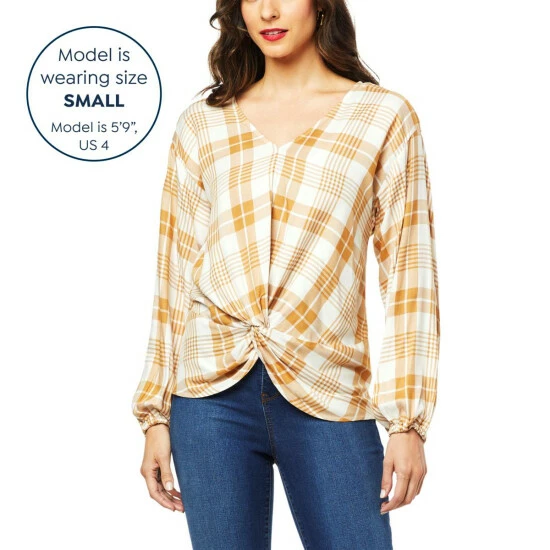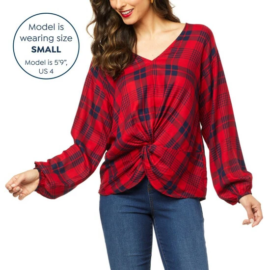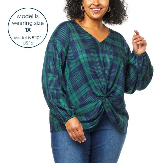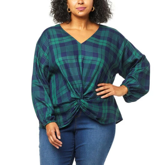IMAN Global Chic Plaid Twist-Front Woven Top