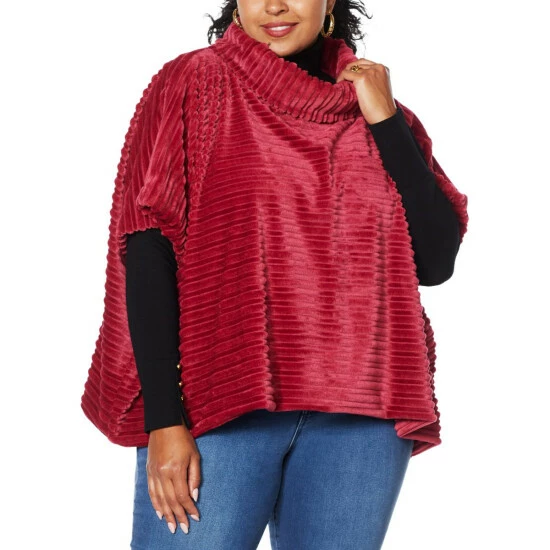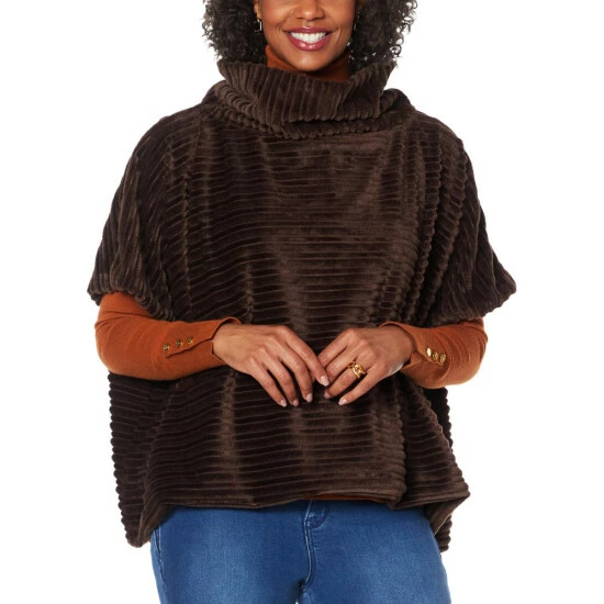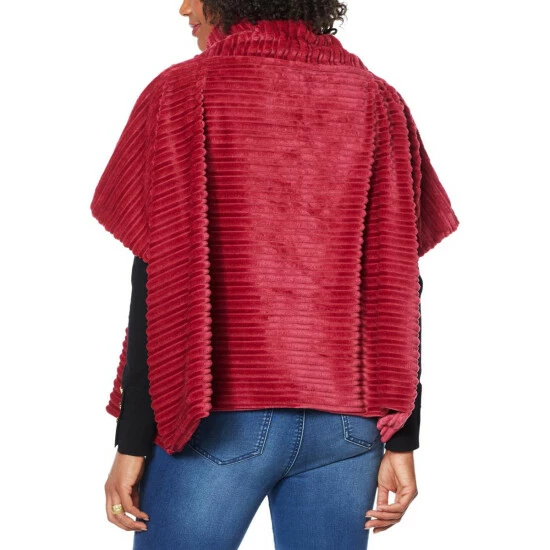 IMANGlobal Chic Textured Faux Fur Cowl-Neck Poncho Cape