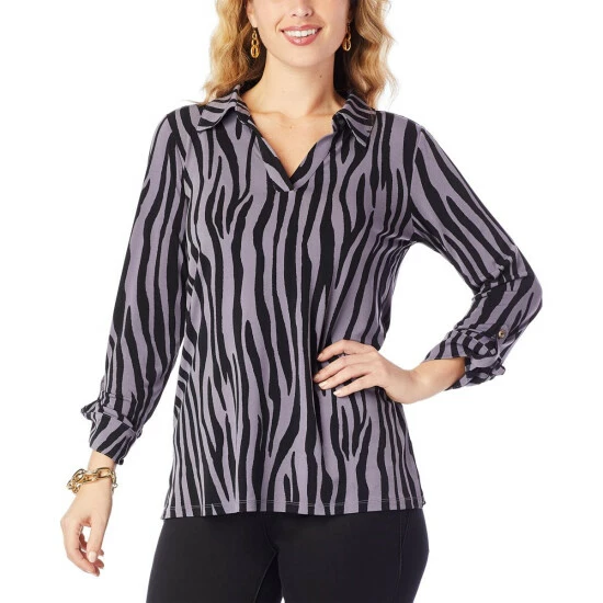 This exotic popover top makes the perfect addition to your wardrobe.Whether for work or play, you’ll be dressed to impress.