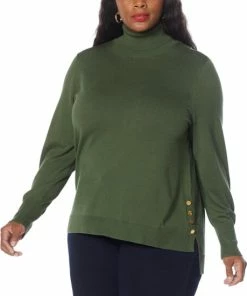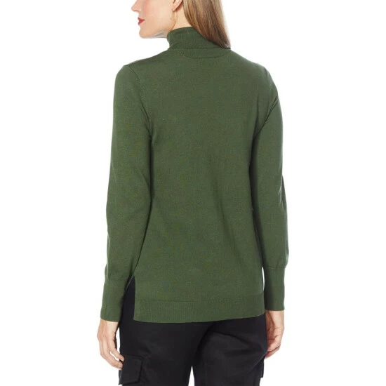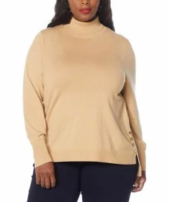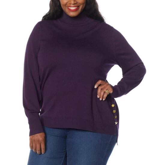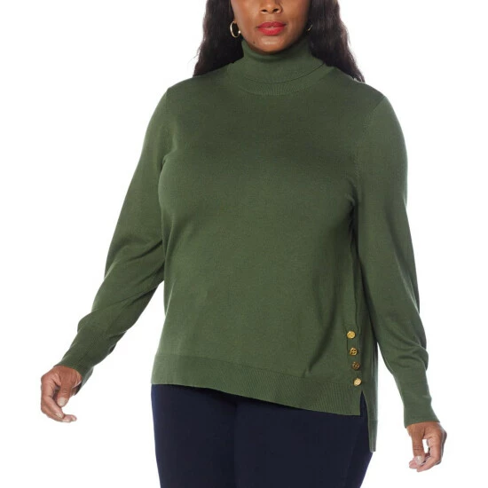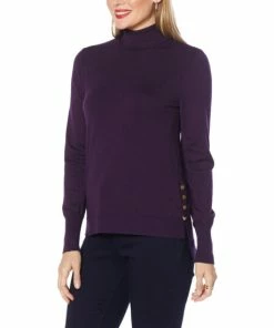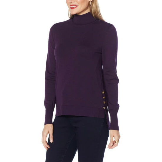 Decorative button detail and a super-soft sweater knit make this classic turtleneck top stand on the dreariest of winter days. It’s oneof those must-have items for your cold-weatherwardrobe.
