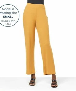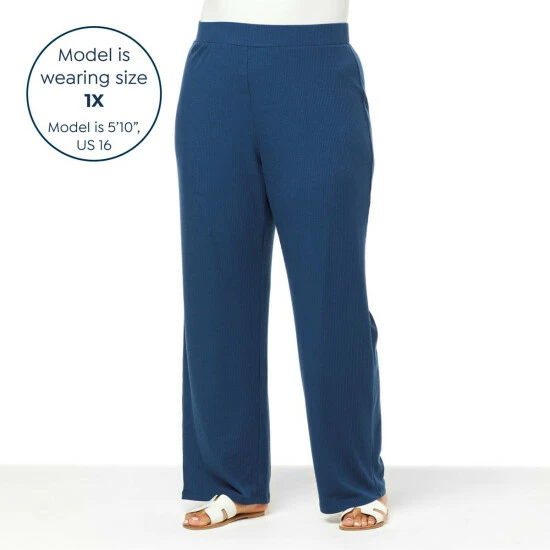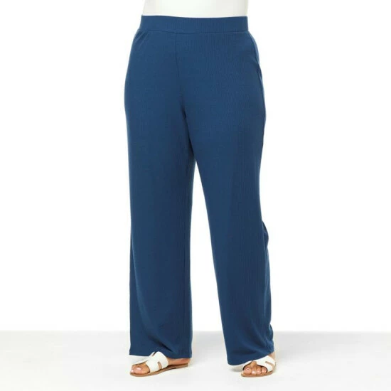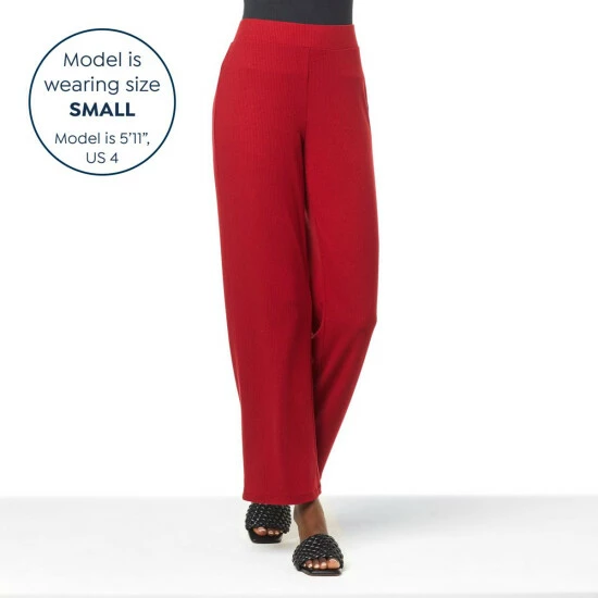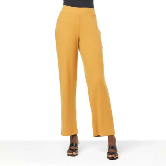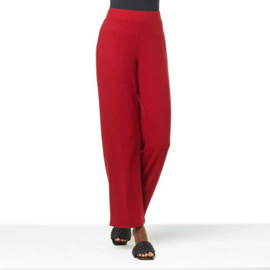 Update your wardrobe with theseluxe ribbed stretch knit pull-on pants.