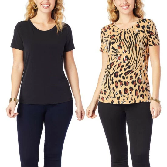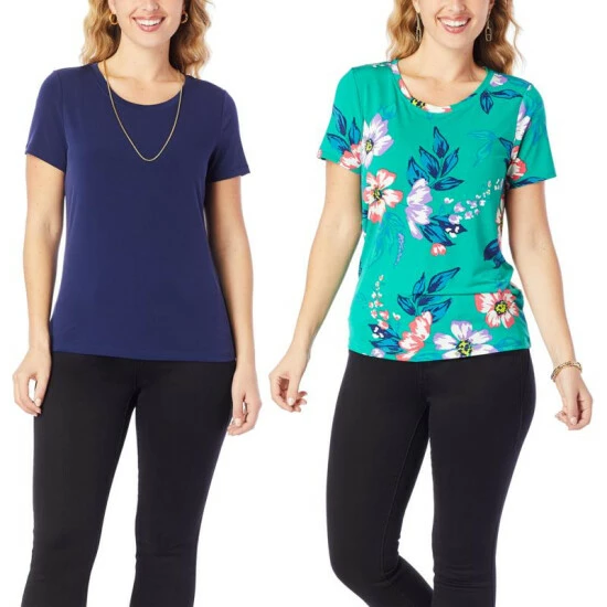 IMAN Global Chic 2-pack Short-Sleeve Solid and Print Tees