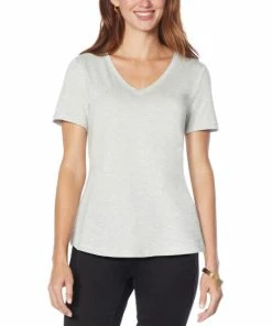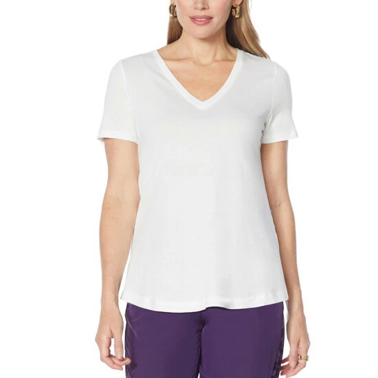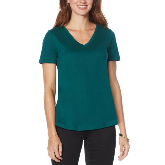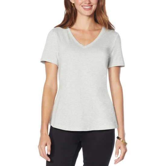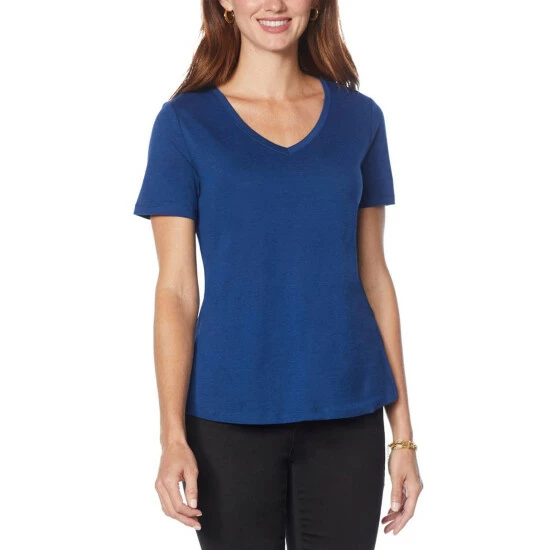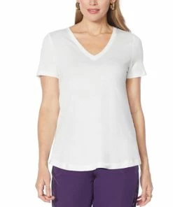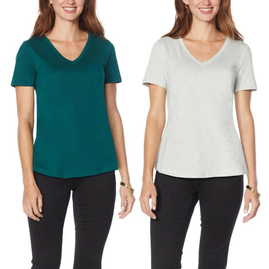 Featuring flattering v-necklines and curved hems, these tees are made from a cotton blend for comfy wear, and pair effortlessly with everything fromfloaty, summery skirts to casual, anytime denim.
