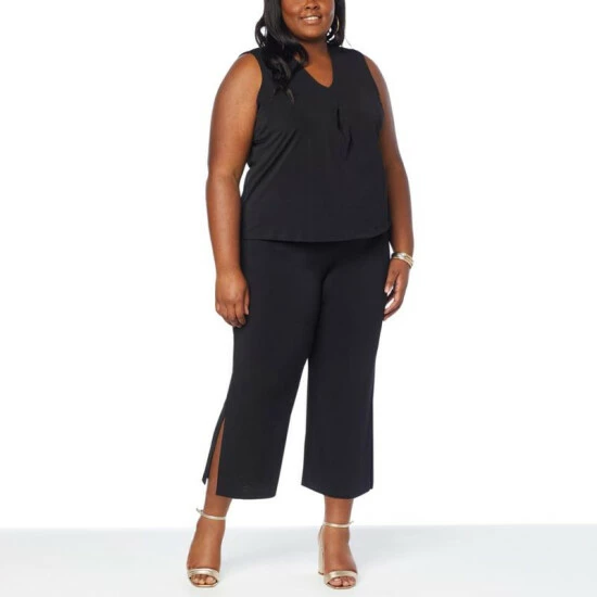 IMAN Global Chic 2-piece Drapey Knit Top and Cropped Pant Set