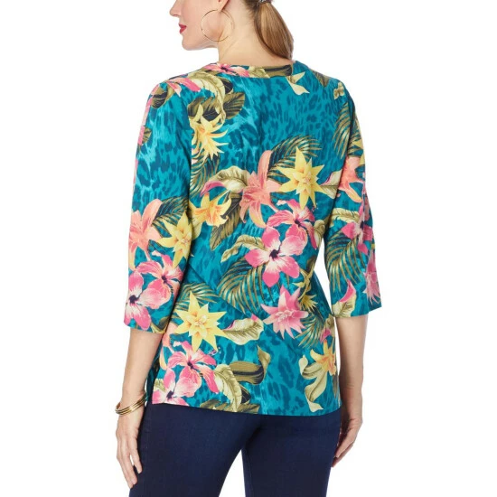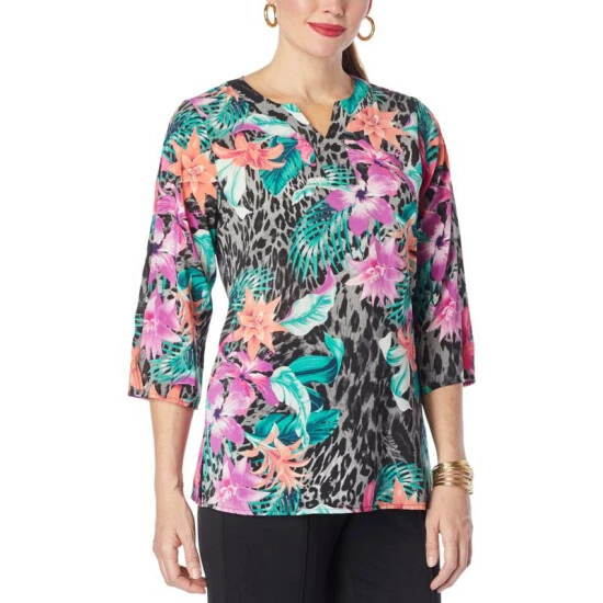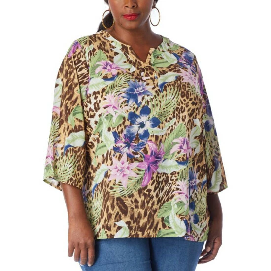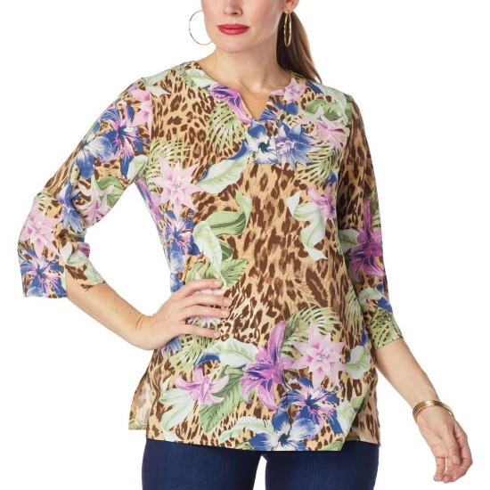IMAN Global Chic 3/4-Sleeve Floral Print Chiffon Tunic