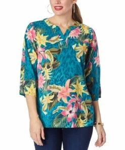 Paired with any of your favorite bottoms, thisprinted chiffontop isthe idealwardrobe staple for year-round style.