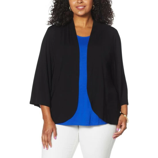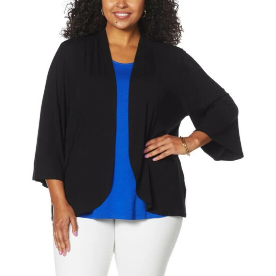 Add a layer ofluxury with our classic, open-front cardigan from Iman.