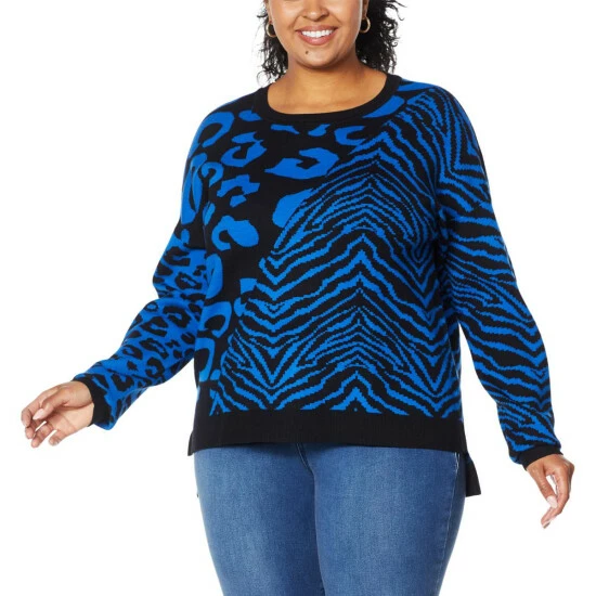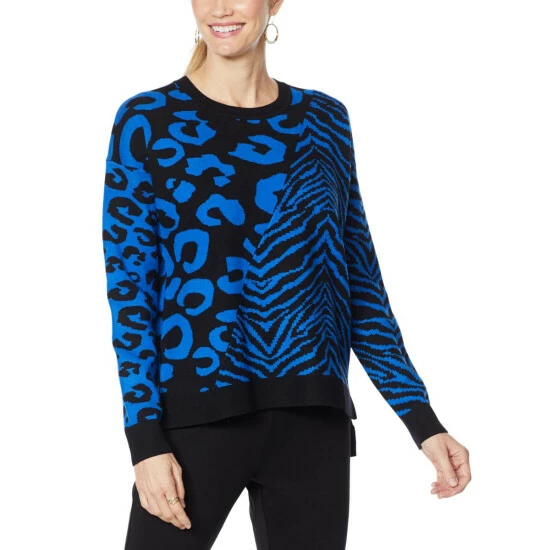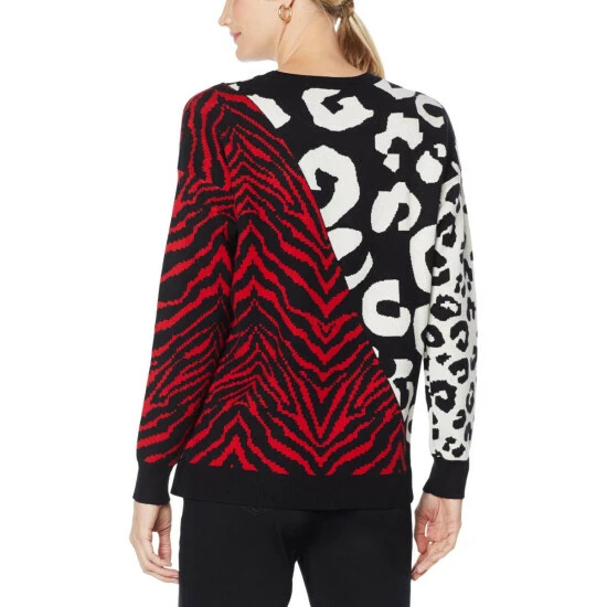 Take your look from ordinary to extraordinary with this eye-catching pullover sweater. The animal-print combo creates an exotic look that’s sure to turn heads.