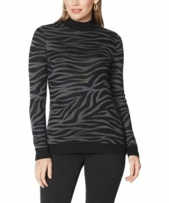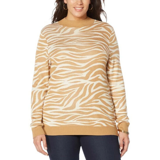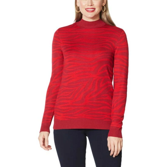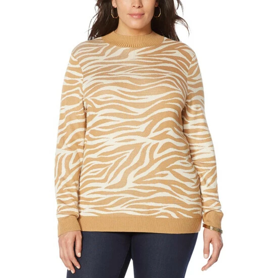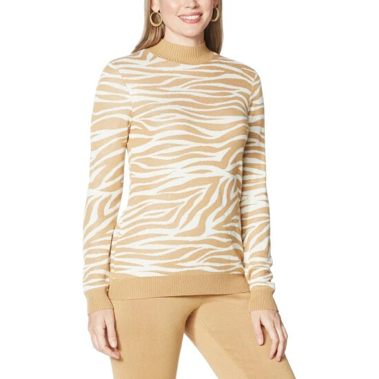 IMAN Global Chic Animal Print Mock Neck Pullover Sweater