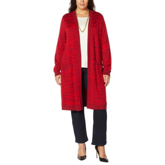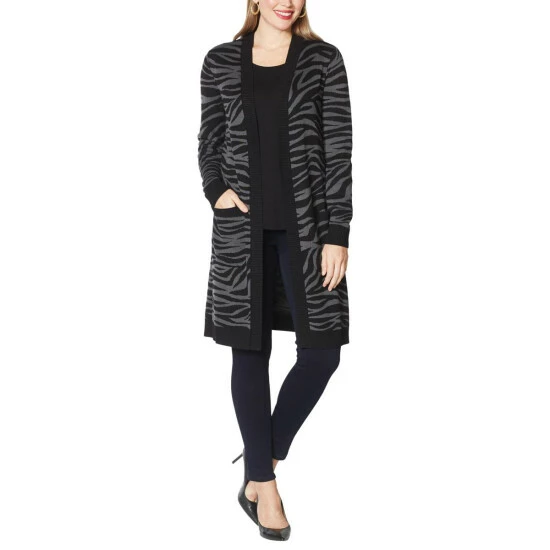 Add a layer ofluxury to your ensemble with this sophisticated, open-front cardigan from Iman.