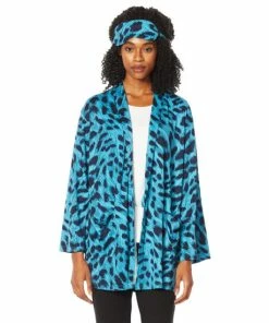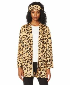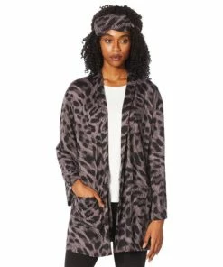 Enjoy your downtime in style. This luxuriousleopard-print robe and mask set takes relaxation to new levels.
