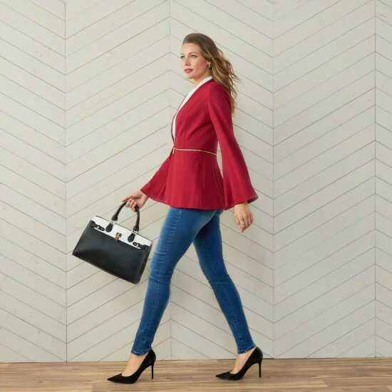 | Fabrication: | Woven stretch denim (Chambray, Dark Denim, Medium Denim) or woven stretch twill (Black, Burnt Orange, Cocoa, Evergreen, Purple Magic) |