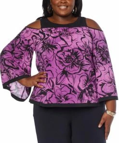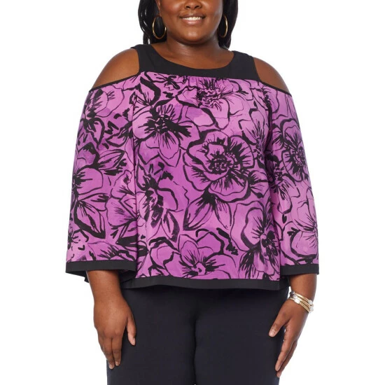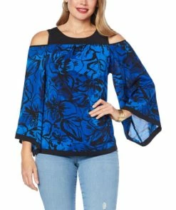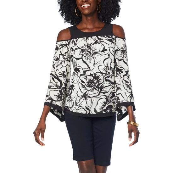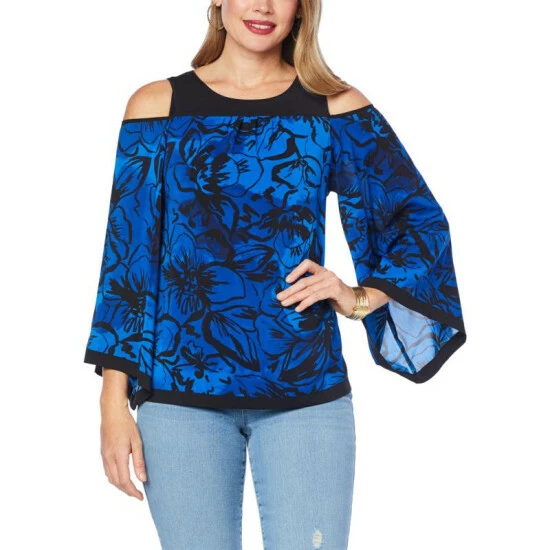 IMAN Global Chic Cold Shoulder Bell-Sleeve Top