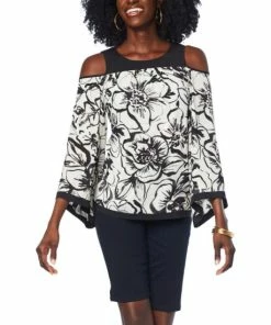 Take your look from ordinary to extraordinary with this eye-catchingprinted top. The easy pullover design anddramatic sleeves aresimply divine.