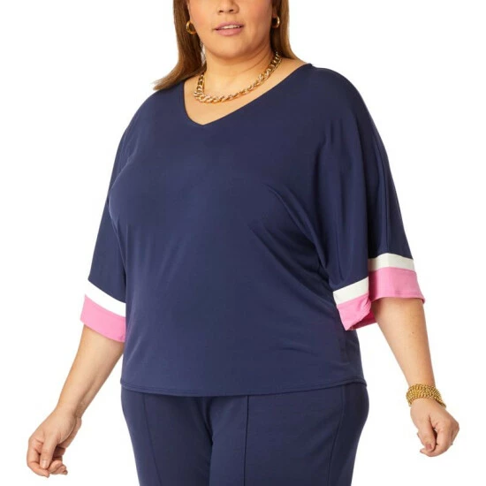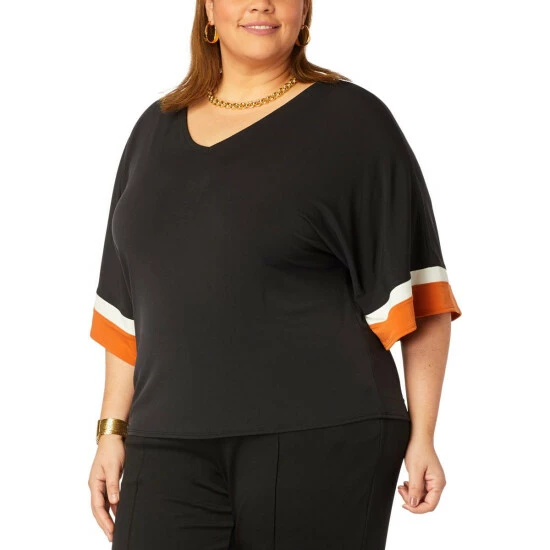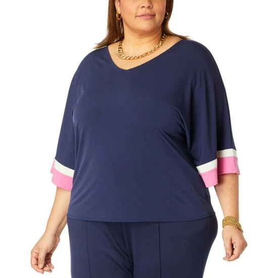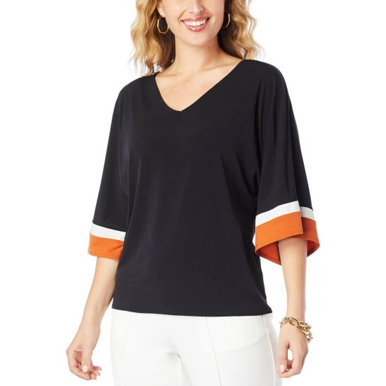 Take your look from ordinary to extraordinary with this eye-catching pullover top. The colorblock design and kimono sleeves aresimply divine.