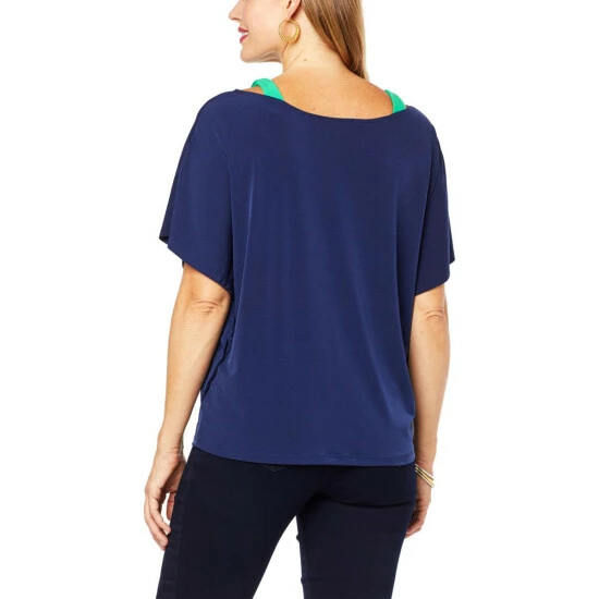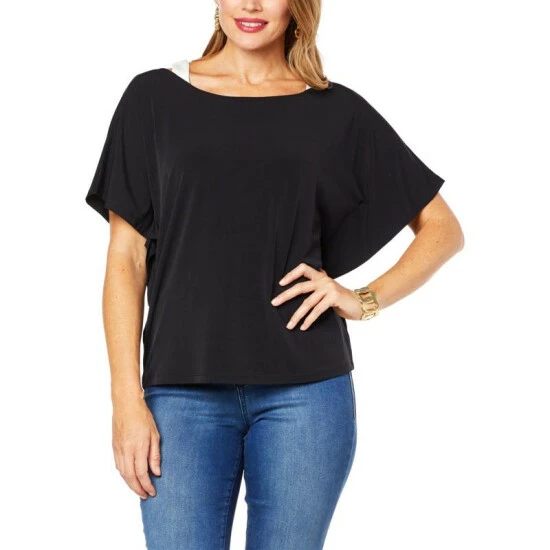 Built-in shoulder strapsand dolman sleeves add a chic, high-fashionedge to this classic, workday-to-weekend top.