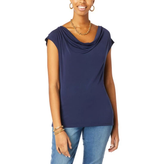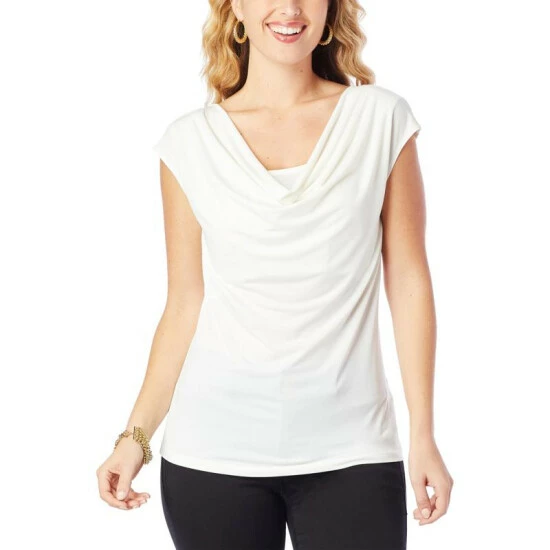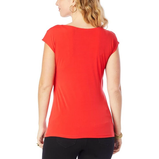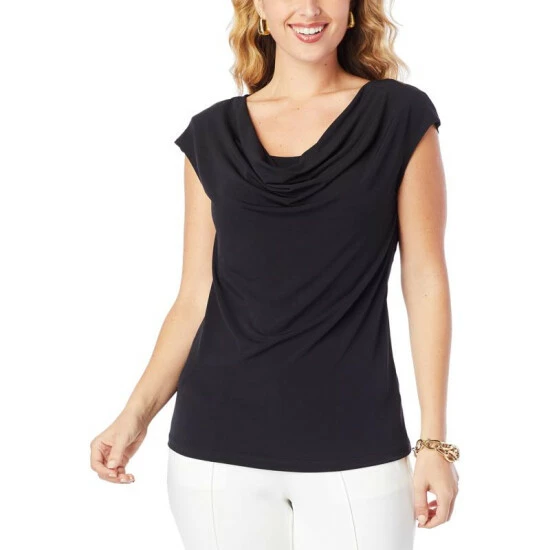 Perfect for year-round style, this flattering drape-front topmakes an ideal staple piece for seasons to come.