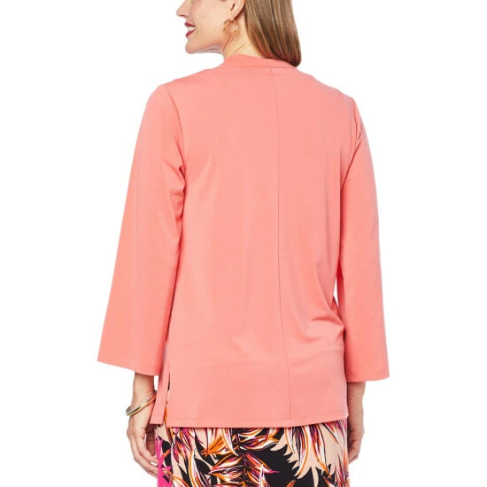 Versatility is key with thistimeless topper. Layer with other garments to create a variety of great looks for year-round style.