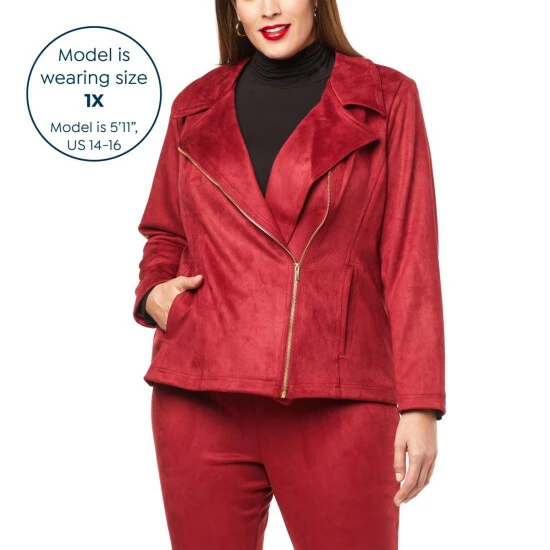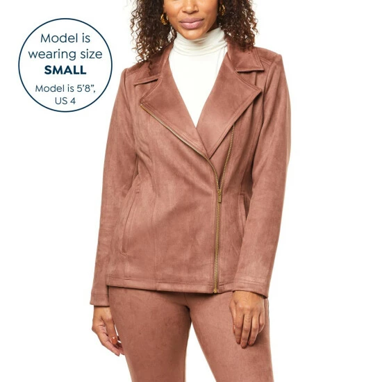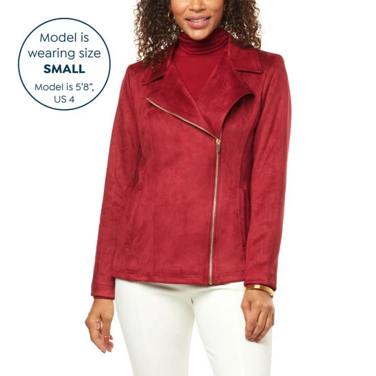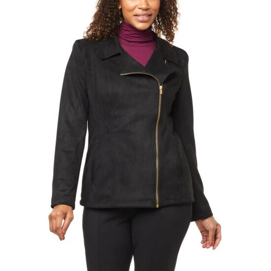 Live life on the edge. This faux suede moto jacketadds a cool element to your workday-to-weekend looks.