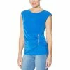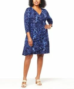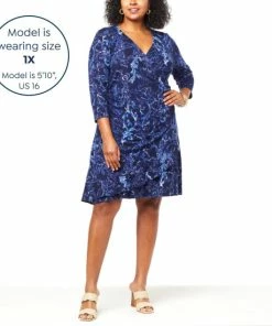| Design Features: | Faux wrap front; asymmetric ruffle detail; sideseam shirring |