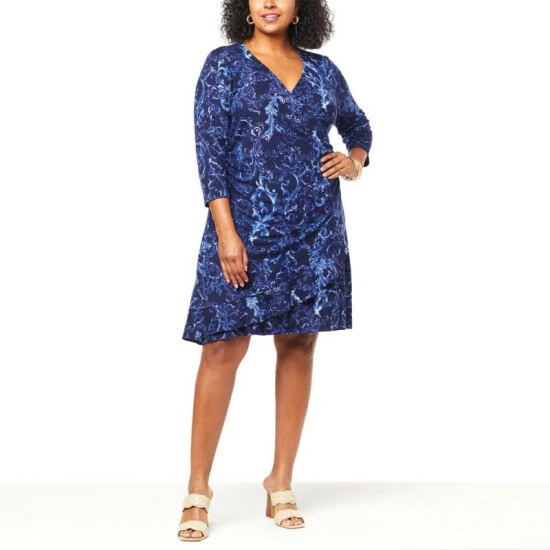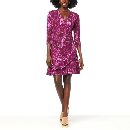 IMAN Global ChicFaux Wrap-Front Dress with Ruffle Detail