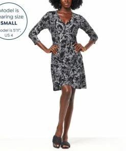 Thisflattering ruffle-detaildress features a faux wrap front, adding instant polish to your everyday style.
