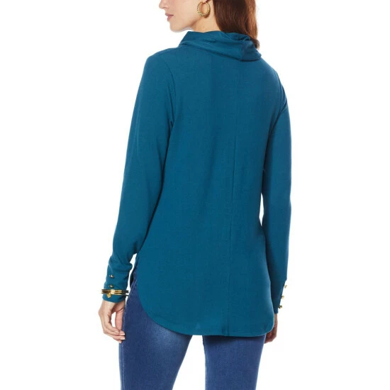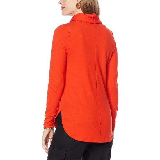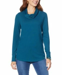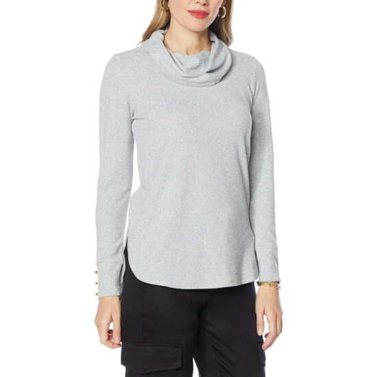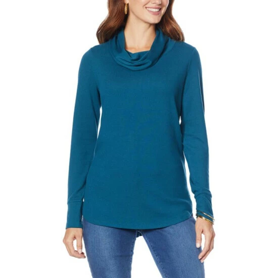 A drapedcowl neck makes for a chic closet staple. This soft, brushed Hacci knittop is a brisk weather staple that is oh-so-cute.