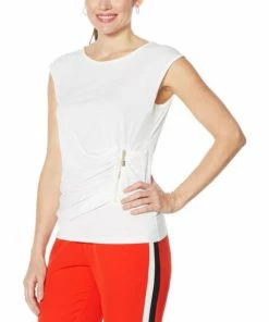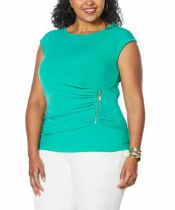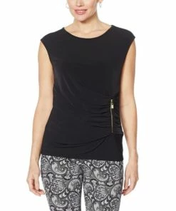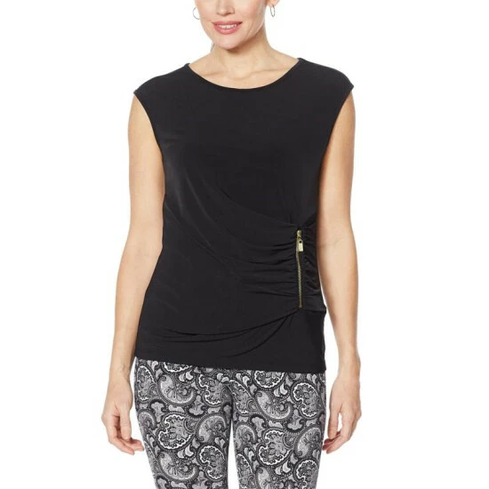IMAN Global Chic Illusion Wrap Zipper Detail Top