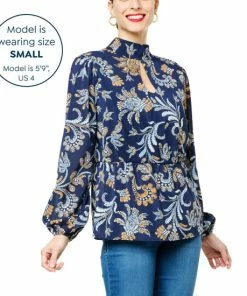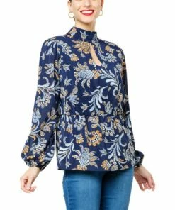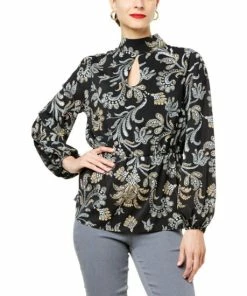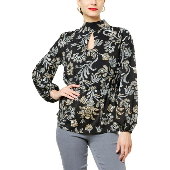 IMANGlobal Chic Keyhole Mock-Neck Blouse
