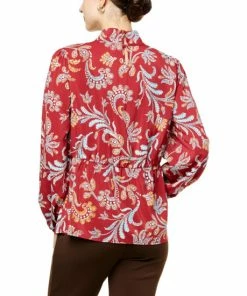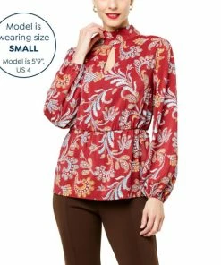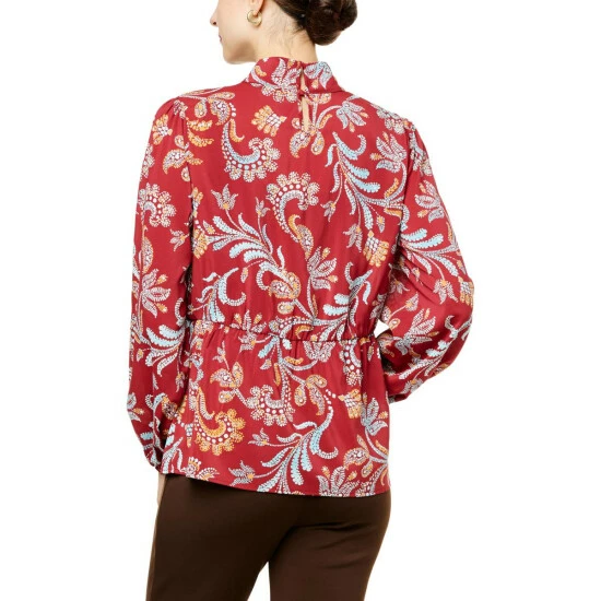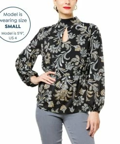 Make a grand entrance โ or exit โ in thishead-turning top. With pleat-front detail and a mock neck, it’s not something you see everyday.