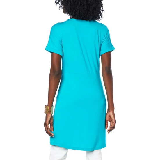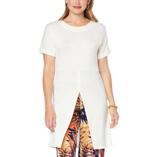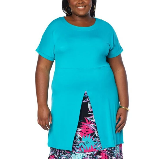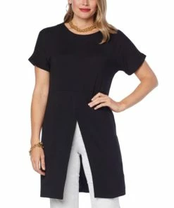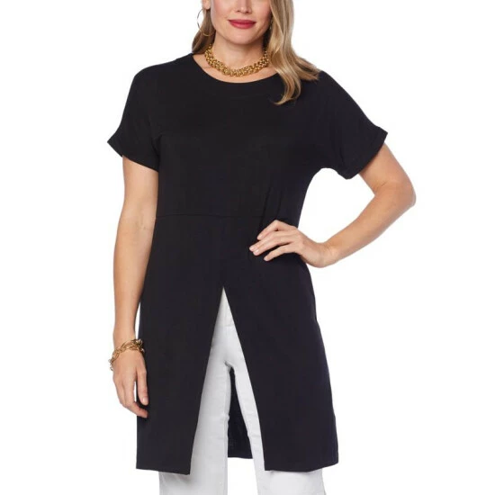 Bring on the drama when wearing this stylish front-slit top that complements your favorite bottoms.