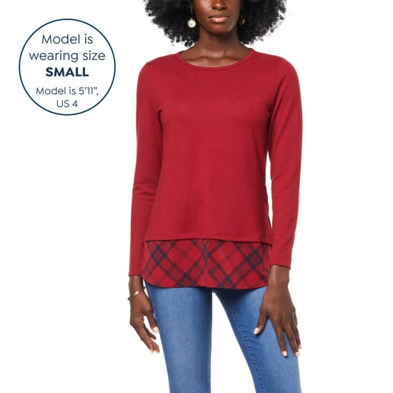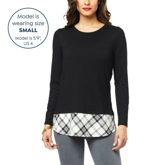 You’re going to love that thisfiercely detailed twofer treats you to thelook of perfectly coordinated separates in one stylish, easy-to-wear top.