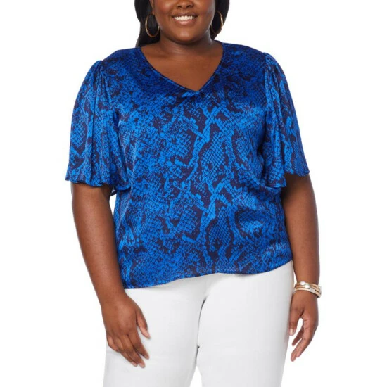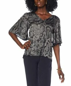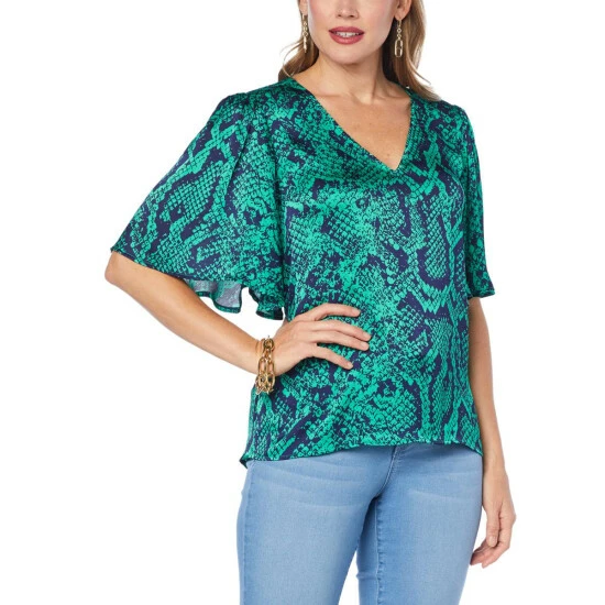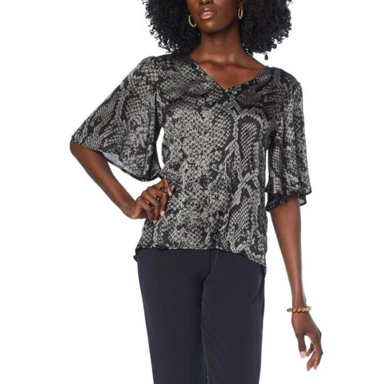 Take your look from ordinary to extraordinary with this eye-catchingprinted top. The easy pullover design anddramatic sleeves aresimply divine.