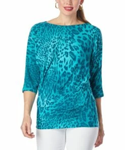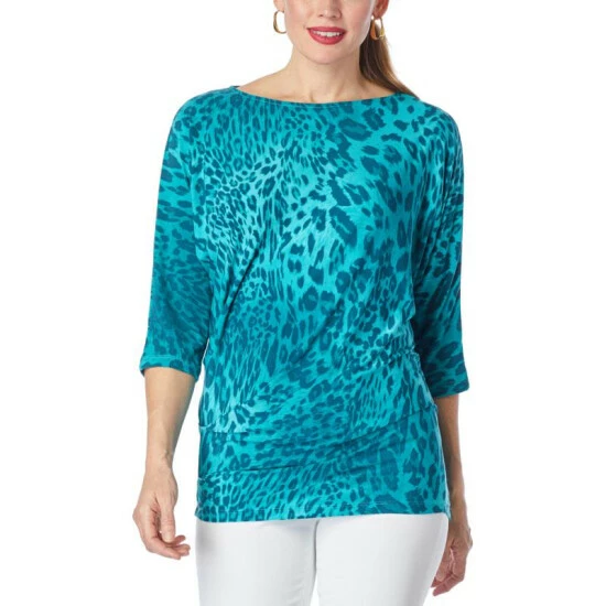 Tucked drapingand dolman sleeves add a chic, high-fashionedge to this classic, workday-to-weekend top.