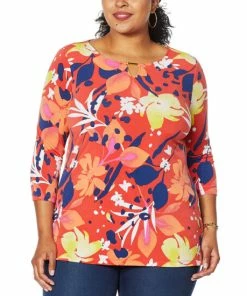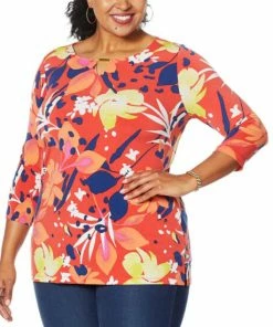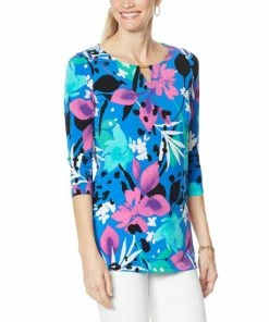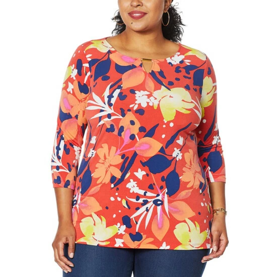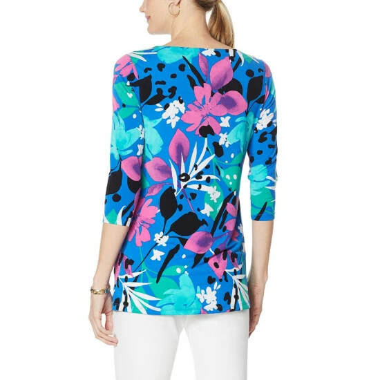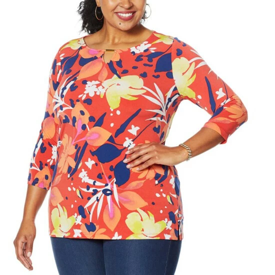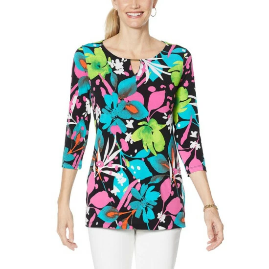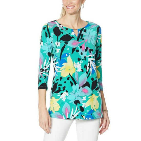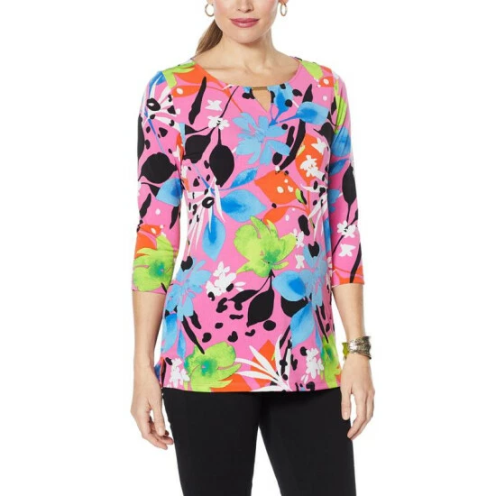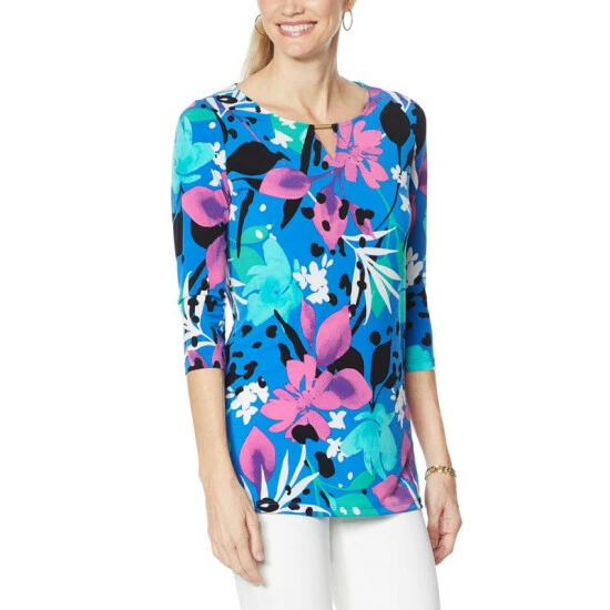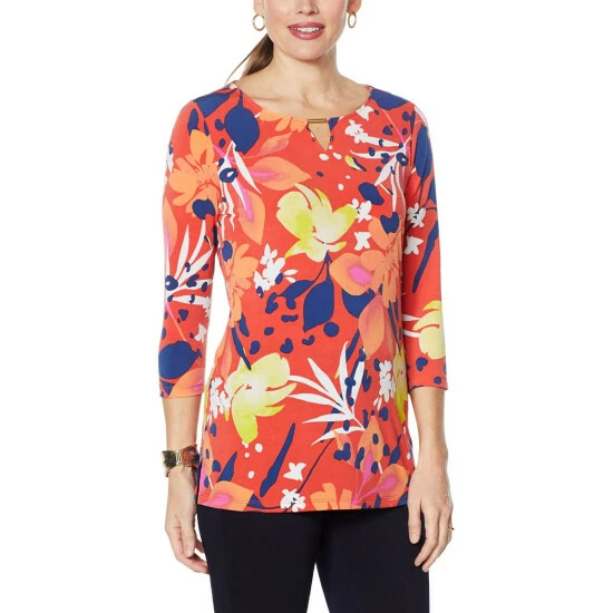 IMAN Global Chic Printed Keyhole 3/4 Sleeve Tunic