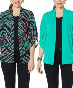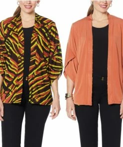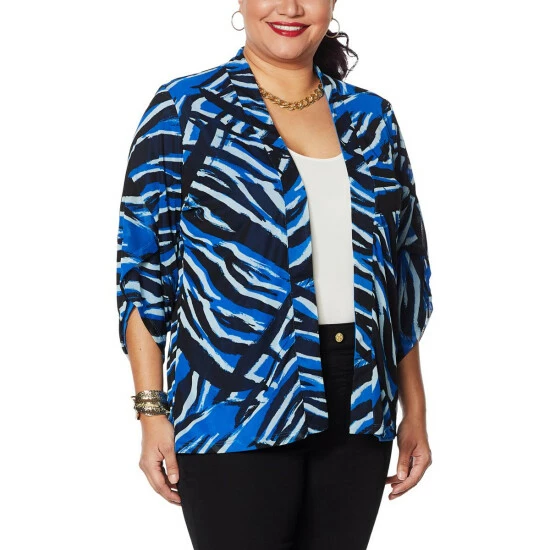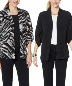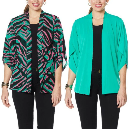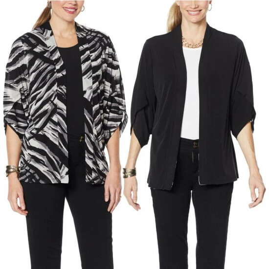 It’s a workday-to-weekend chameleon! Top off a pair of jeans and a tee or a solid dress with the printed side. Wear the solid side with a printed pant or maxi dress. Or, go bold and mix printsfor a totally trendy look.