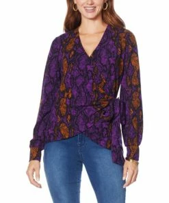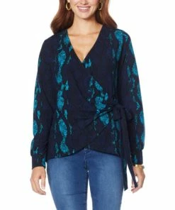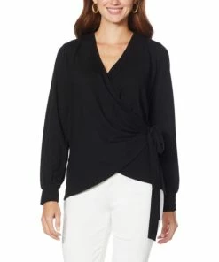 | Style: | Pullover faux wrap design |
