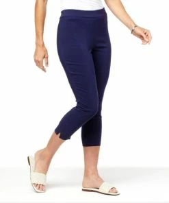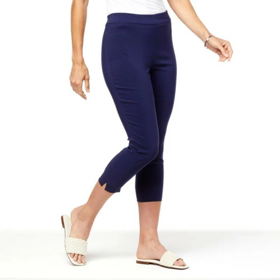 Errand running, TV binging, dog walking, casual weekend-ing… there’s so many things you can do in a great pair of pull-on pants. This cozy-gal staple in a moderate mid-calf length features a slim fit with split sideseams and a flattering stretch bengaline fabric with slight sheen.
