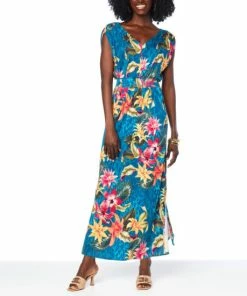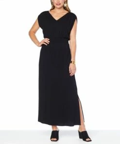 Comfortable and stylish, thisstretch-knit dress features a smocked waist and sleeveless design for your warmer-weather workdays and weekends.
