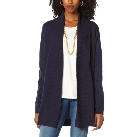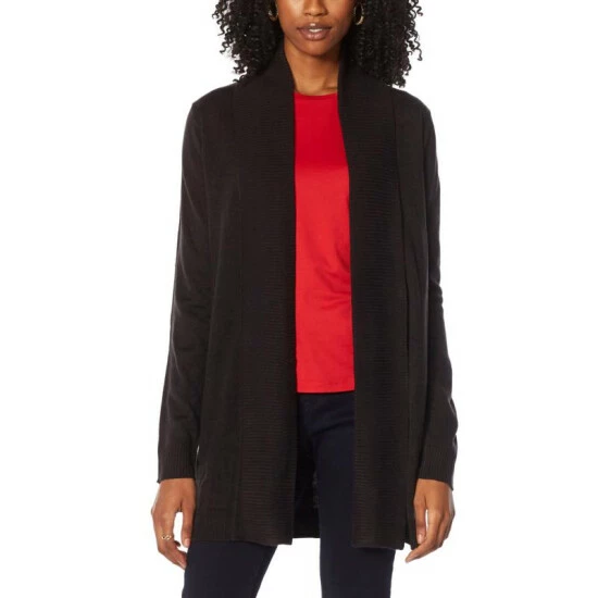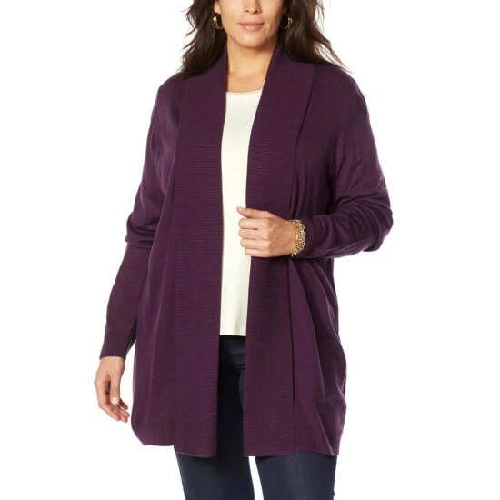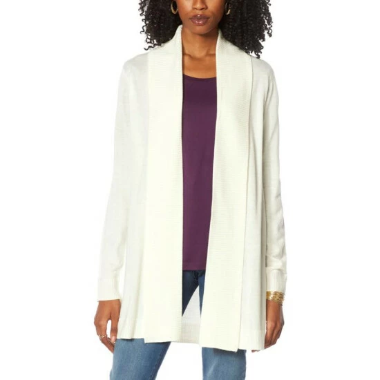 Add a layer ofluxury with this sophisticated, open-front cardigan from Iman.