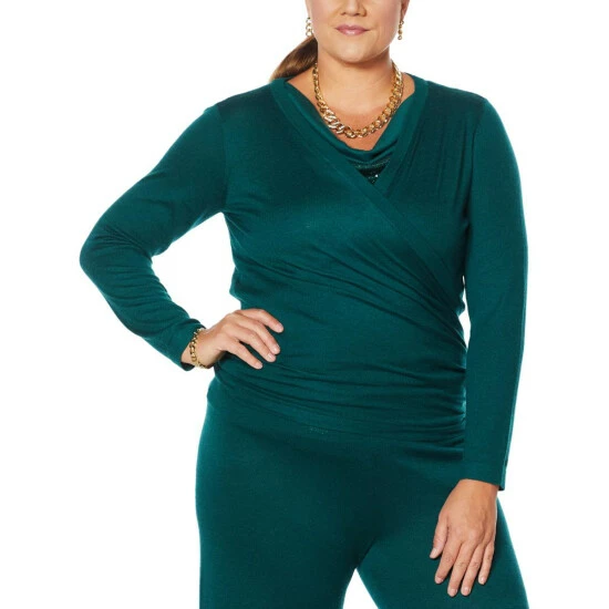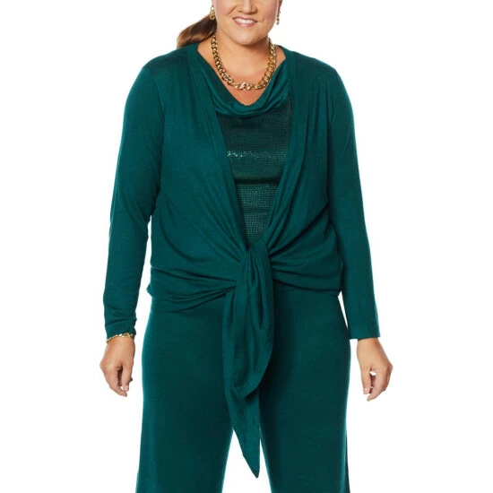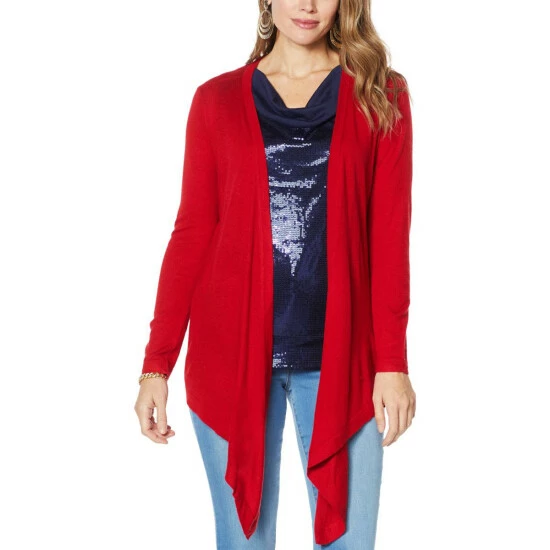 | Style: | 3-way convertible cardigan; open draped front |